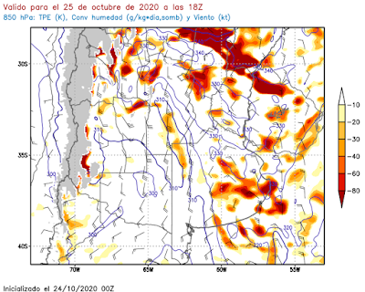 Les dejo algunas imágenes sobre los altos valores de inestabilidad atmosférica